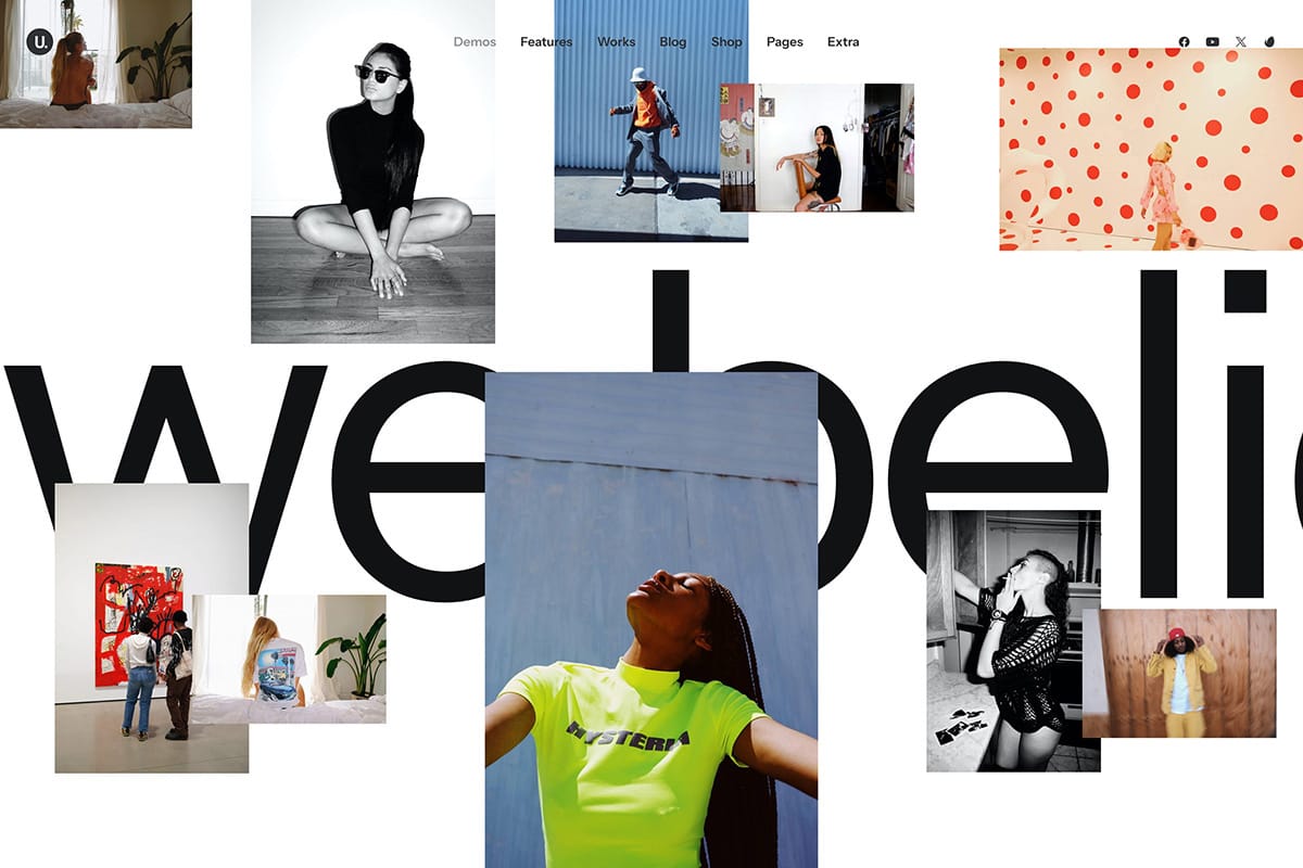 In Uncode, there are 28 Shape Dividers to pick from with just one click, or you can create your custom own by uploading an SVG code.